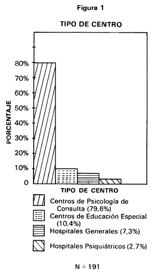 De todas formas, si consideramos la muestra estudiada en este caso como representativa de la realidad asistencial en Psicología Clínica de Madrid capital y provincia, se podría pensar que los Organismos Públicos no cubren gran parte de esta demanda asistencial (si exceptuamos los Centros de Salud Municipal y demás Centros dependientes de los Ayuntamientos y los Centros de Diagnóstico y Orientación Terapéutica y el gran esfuerzo que están llevando a cabo para atender a la población madrileña). Esta demanda se está cubriendo en su mayor parte en los Centros privados que, por supuesto, son más numerosos que los otros Centros dependientes de Organismos Públicos.