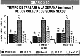 Gráfico 50. Tiempo de trabajo a la semana de los colegiados según sexos.