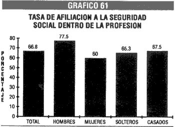 Gráfico 61. Tasa de afiliación a la seguridad social dentro de la profesión.