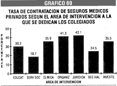Gráfico 69. Tasa de contratación de seguros médicos privados según el área de intervención a la que se dedican los colegiados.