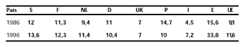 Llama la atención que en la década de los 70 la tasa de paro de España y la UE fuera muy similar, mientras en la década de los 80 la tasa de paro de España (tasa de paro estimado por la EPA), pasara a duplicar la de la UE, situación que se ha venido manteniendo a lo largo de los años 90, con pequeñas oscilaciones.